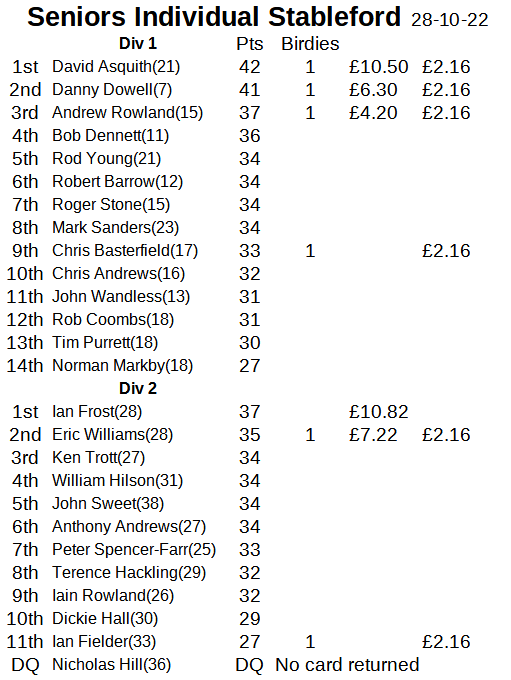 A very busy Tuesday up at the Club, with the Lopen debating Society in their bright yellow shirts were late teeing off as they overran their Team selection meeting. The tee was then jam-packed with 32 Seniors ready to start the final Home Match of the season against a very friendly Enmore Team.