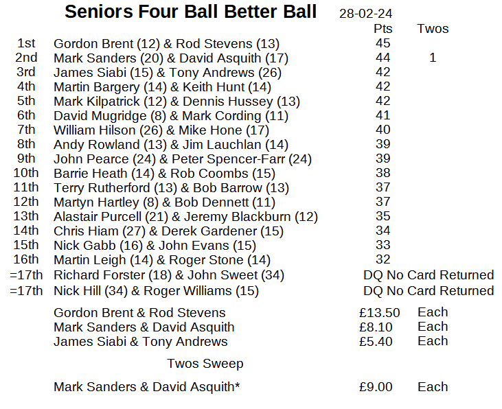 Monday 1st December - Course Closed - Round 2 cancelled Until We Agree new date...can you solve it ?